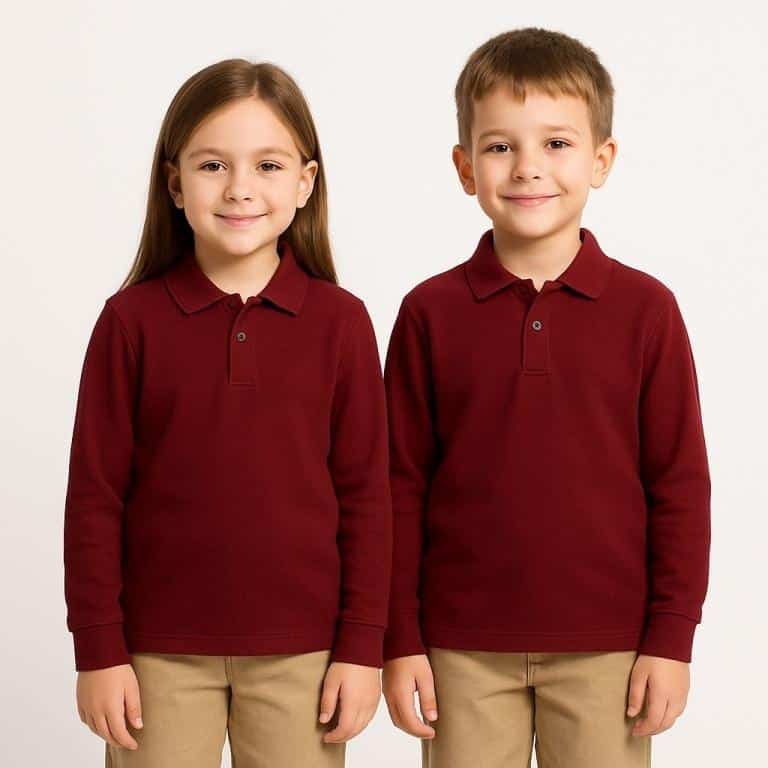 * Doğal ve sağlıklı kumaşlardan (pamuklu), polo yaka, kısa veya uzun kollu bordo renk tişört